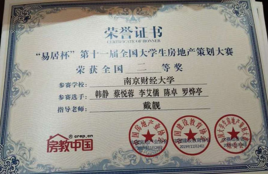 房地产系安得广厦团队(成员:韩静、蔡悦蓉、李艾儒、陈卓、罗烨亭,指导教师:戴靓)荣获全国二等奖。黑丝