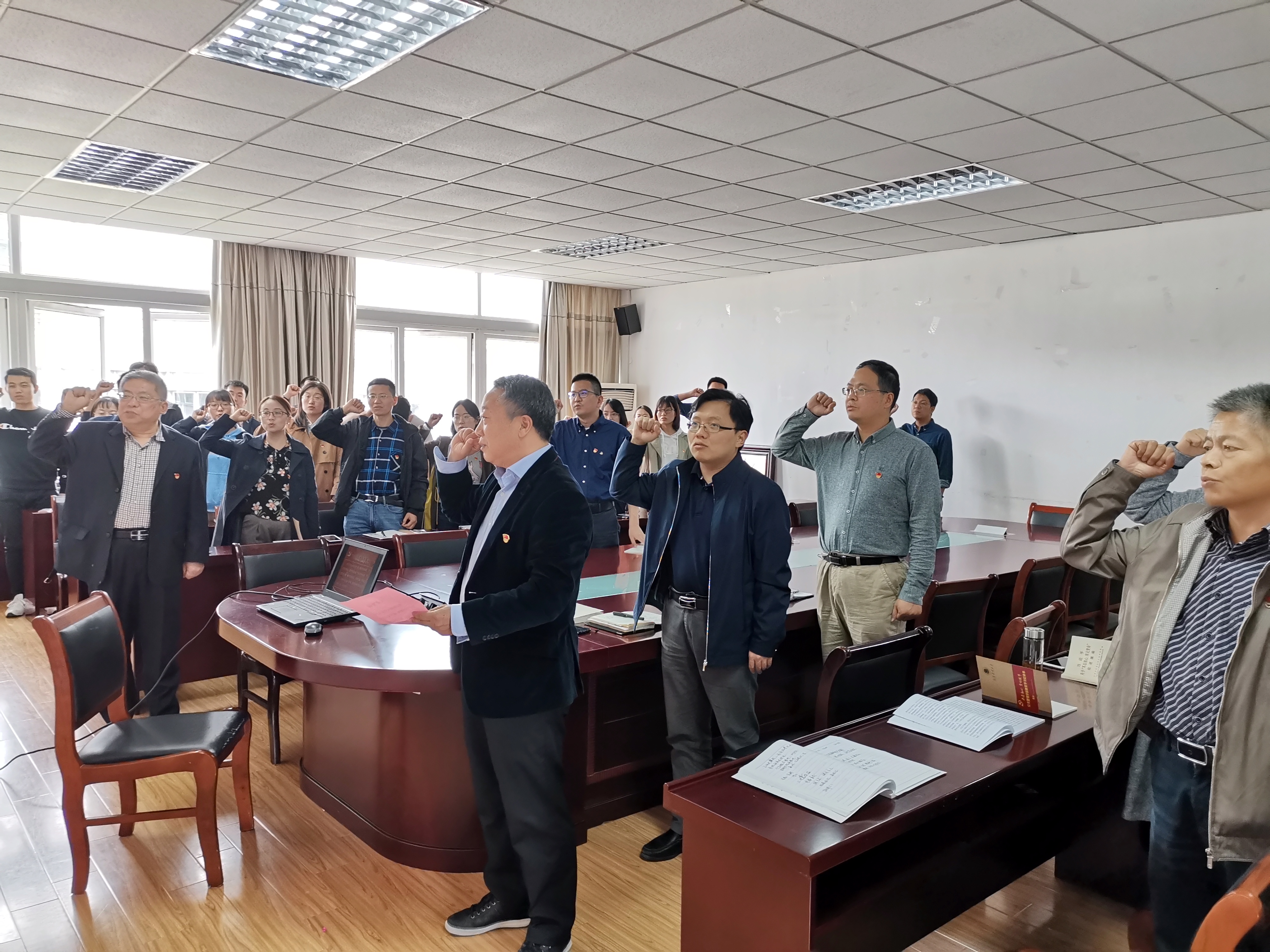 而后,全体与会党员在学院党委书记胡永远领誓下,面向党旗,再一次郑重宣誓。胡书记表示,重温入党誓词,就是重温当年的决心和信念。我们要始终铭记入党的誓词,不断进取,争做合格的共产党员。
