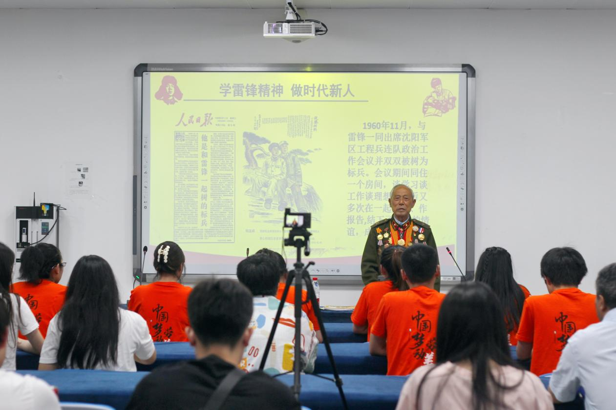 在现场,赵老还与同学们展开了亲切互动。同学们都被赵老的演讲深深鼓舞,纷纷表示要向雷锋同志学习,用辛勤劳动、接续奋斗为国家富强、民族振兴和人民幸福出力流汗,让雷锋精神永绽光芒。公事管2101班的蒋仁淞同学有感而发道:“赵老的讲话令我深受触动,他的样子是真正的人民解放军战士该有的样子。他的分享更加坚定了我今秋计划参军入伍的决心,我要把雷锋精神带入军营,争做一名不怕牺牲、甘于奉献的人民子弟兵!”