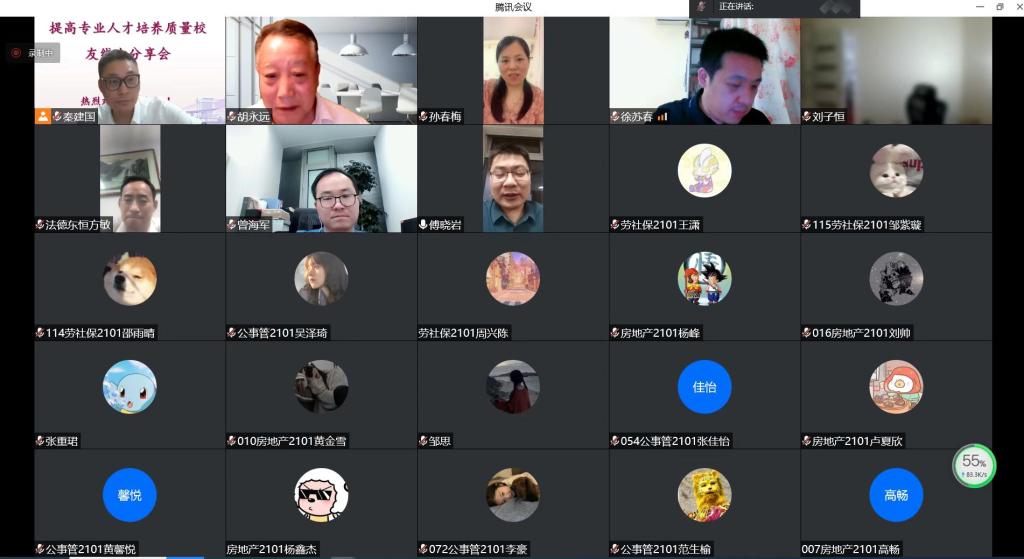 举办了“访企拓岗、促教、促就业”线上校友分享会。分享会特邀学院2005-2008届部分优秀校友为在校师生答疑解惑。学院党委书记胡永远、党委副书记张荣霞参加会议并讲话。学院部分教师和学生近150人参加会议。会议由学院劳动与社会保障系主任秦建国主持。
