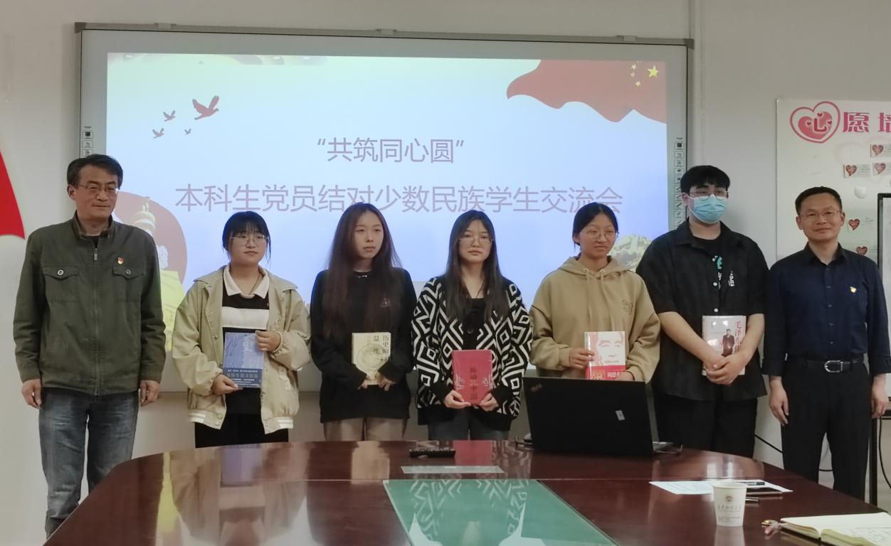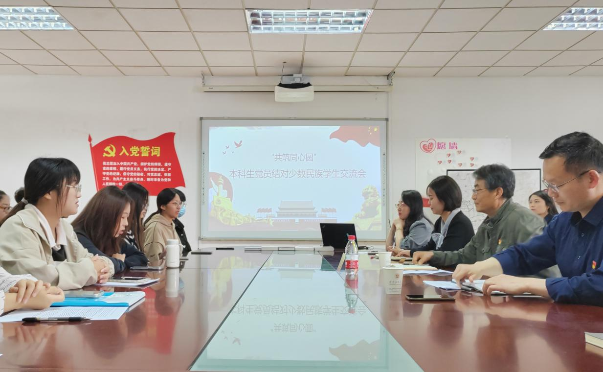 本科生党支部政治辅导员李群参加支部在德济楼508会议室开展的“共筑同心圆”——本科生党员结对少数民族学生交流会活动。黑丝