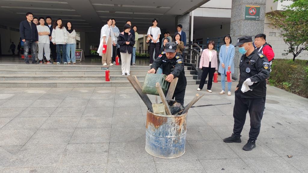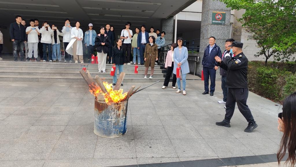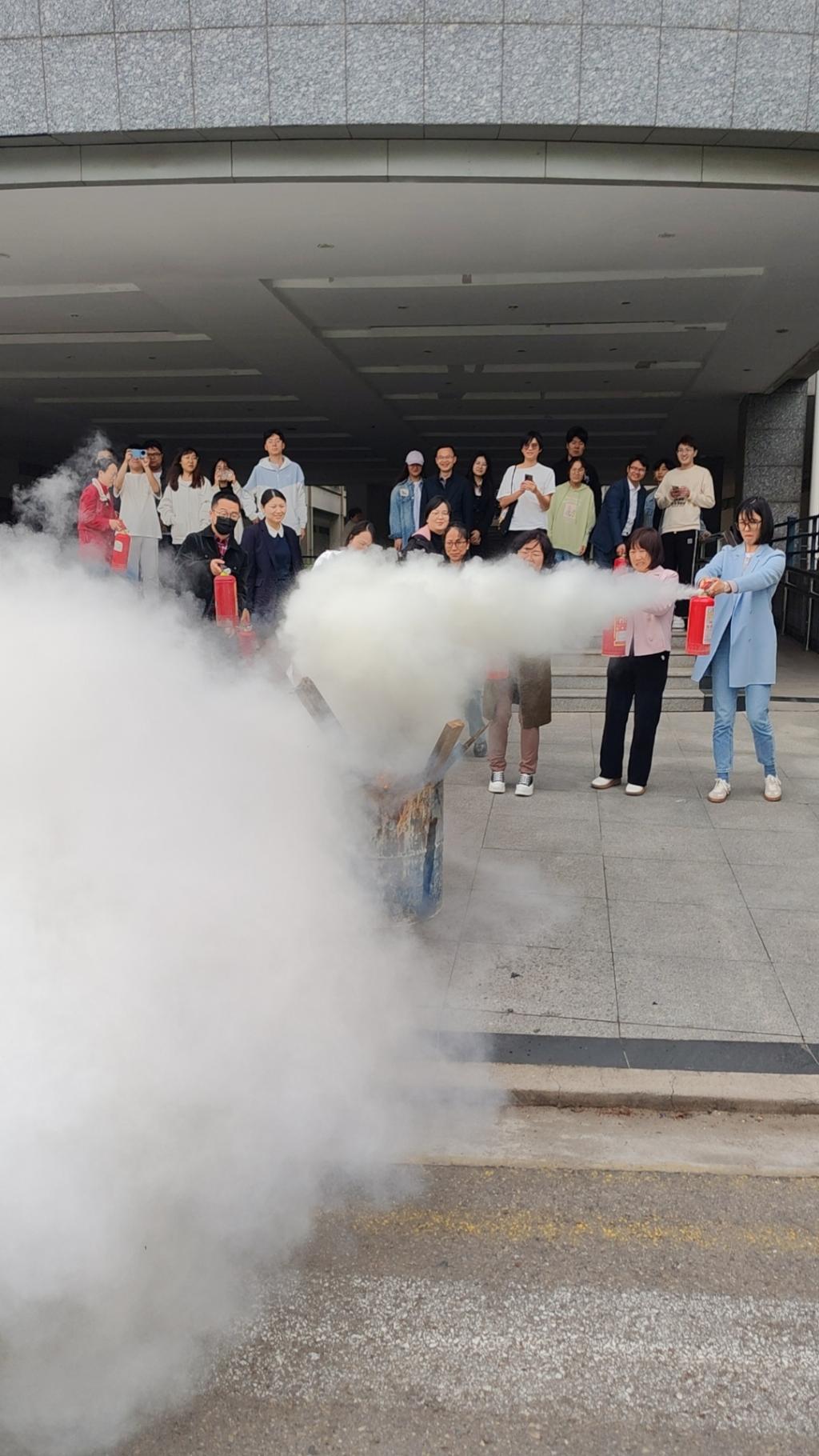 随着工作人员在德济楼楼道燃放烟雾弹,模拟真实火灾场景,疏散逃生演练正式开始。烟雾在楼道间迅速蔓延,楼内师生在引导员带领下,保持低姿,捂住口鼻,迅速疏散到楼下平台。消防疏散演练结束后,所有疏散人员在指定区域集合,为使师生真正掌握灭火技能,孙浩老师指导大家如何正确使用灭火器。现场师生热情高涨、踊跃参与,亲自操作使用灭火器灭火。
