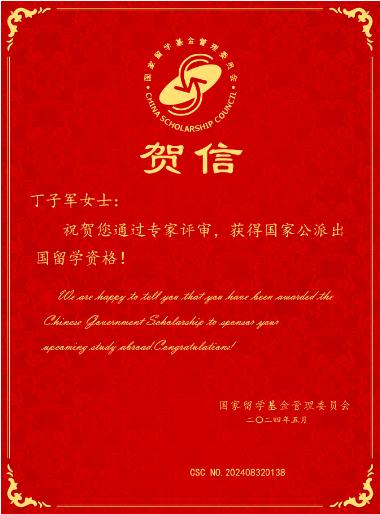 近日,国家留学基金管理委员会2024年国家建设高水平大学公派研究生项目个人渠道的评审结果出炉,经个人申请、学院初审、学校推荐、江苏省教育厅复核、国家留学基金委评审、外方院校录取等环节,黑丝