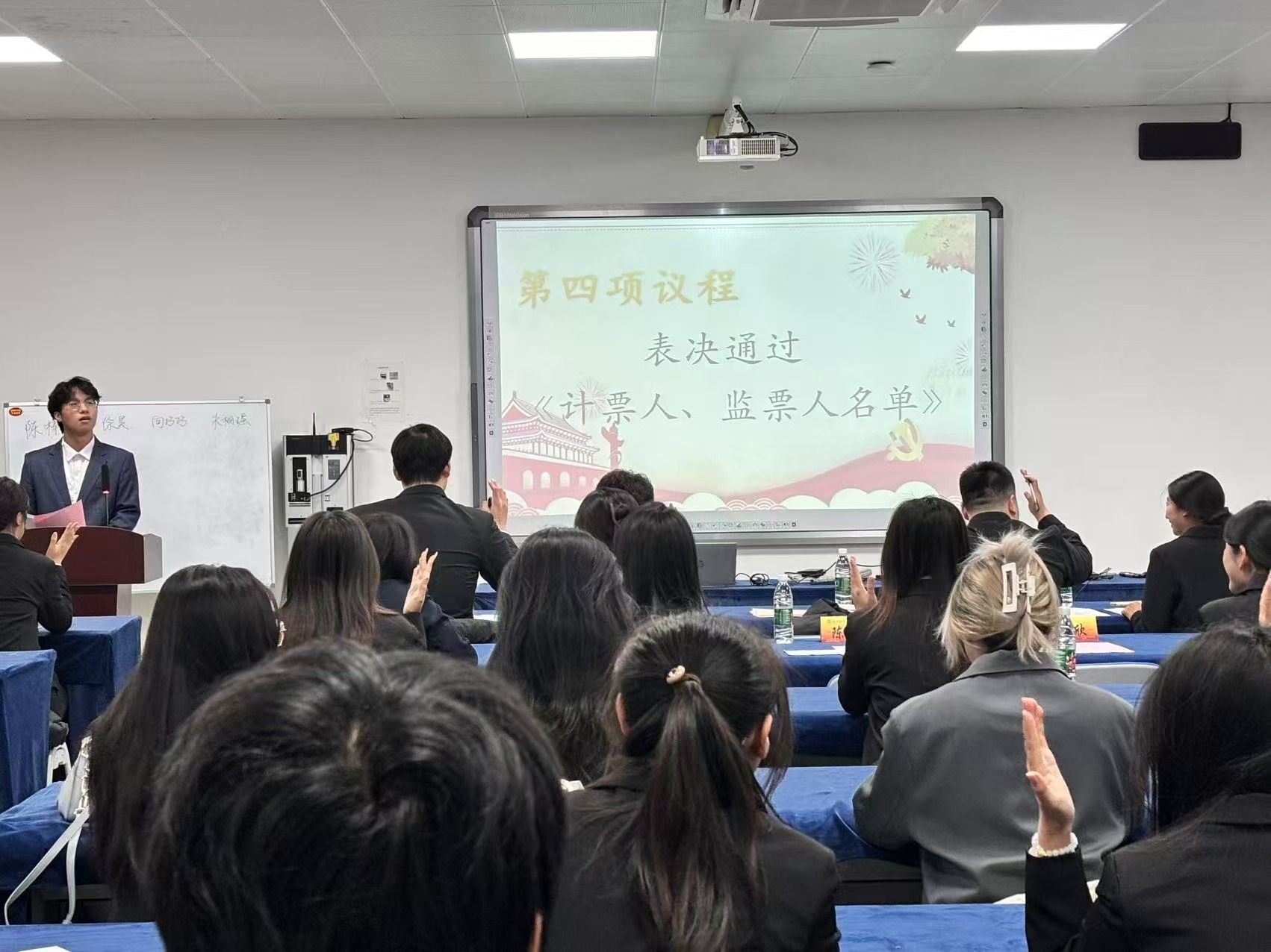 第五项议程——选举产生新一届主席团成员。各班级代表认真听取候选人的发言后,进入匿名投票环节,并由主持人进行严格的计票。经过参会人员的投票及计票人、监票人的统计,会议主持人刘磊宣布黑丝