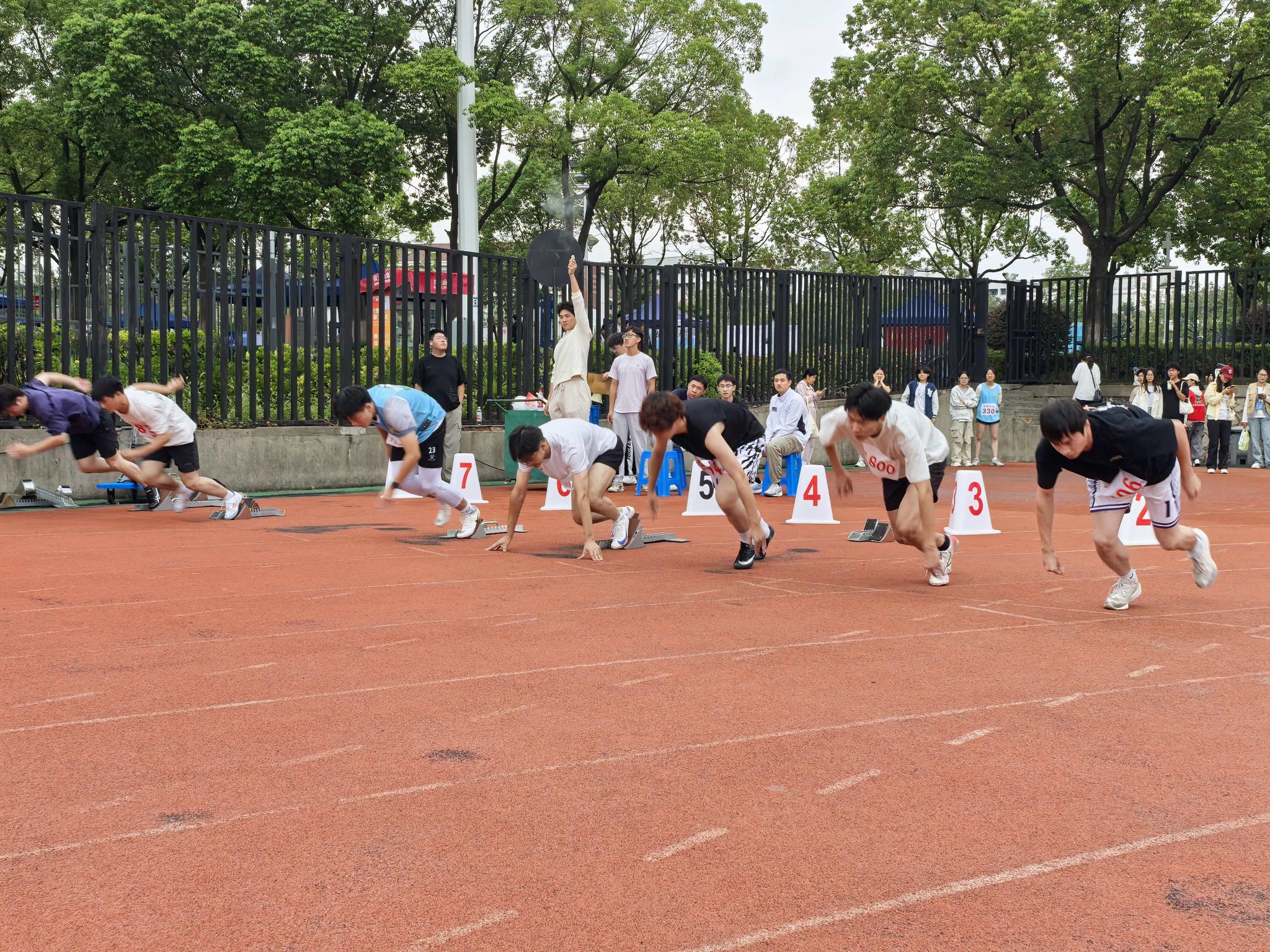 短跑赛道上,发令枪响即是战斗的号角。健儿们如离弦之箭,疾风般掠过红色跑道,呼吸急促,摆臂有力,每一个瞬间都凝聚着爆发的能量,在电光石火之间上演着速度对决。