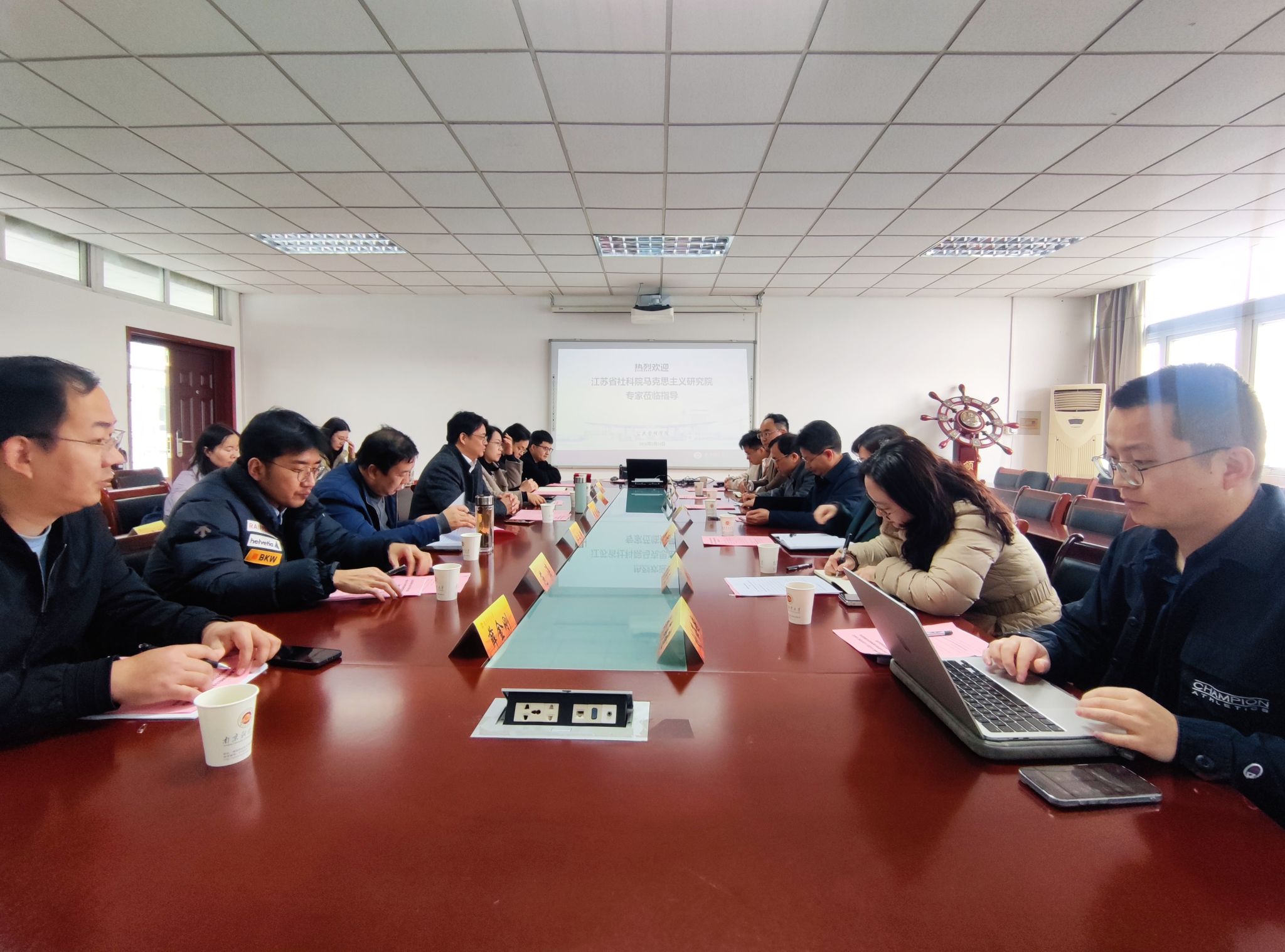 3月23日上午,江苏省社会科学院马克思主义研究院与黑丝 交流座谈会暨兼职研究员聘任仪式在德济楼508会议室顺利举行。江苏省社科院马克思主义研究院院长陈朋、副所长李昕一行7人,黑丝 院长黄建伟、副院长张丽芳、政府管理研究中心主任江永清及学院科研机构成员、教师代表出席本次活动。