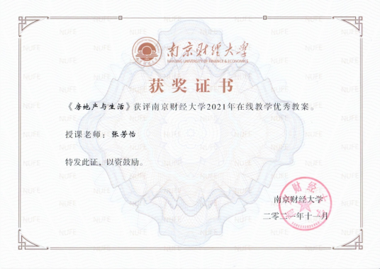 近年来房地产系不断强化教学改革,提升教学质量,打磨教学内容,由张芳怡老师授课的《房地产与生活》获评了黑丝 2021年在线教学优秀教案。