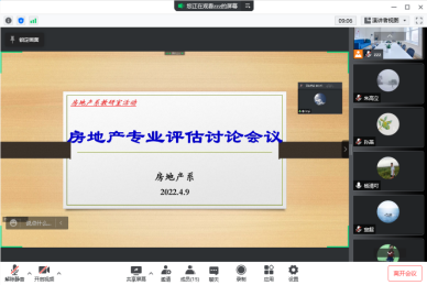 房地产开发与管理专业通过腾讯会议平台召开了2022年本科专业评估推进线上会议,本专业全体教师列席会议。房地产开发与管理专业负责人李永乐教授就历年本科专业评估的基本情况进行了阐述,并对未来房地产开发与管理专业建设提出了切实建议。房地产系主任张丽芳副教授向全体老师传达了本轮省本科专业评估总体工作精神和基本原则,并就本轮专业评估具体环节提出工作要求。最后,全体与会老师讨论了配合专业评估工作可能存在的难点及解决方案,明确了专业评估工作的实施细节,全体老师高度重视此次评估,希望能够以此次评估为契机,再次梳理专业发展方向,明确专业发展目标,推动本专业更高质量的发展。