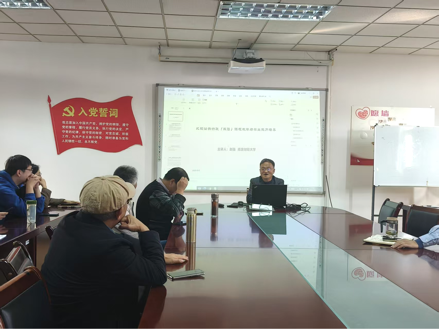 开展了主题为:《比较公共行政》课程教学与学生能力培养的名师名课示范观摩说课活动,本次分享聚焦课程教学价值创造的核心命题,赵强教授结合NPG(新公共治理)理论,提出课程教学是公共价值递送的过程,需坚守“以学生为中心”的服务逻辑,通过微观层面的精准教学干预,实现知识传递与价值共创的有机统一。他指出,课程教学的价值创造体现在三个关键维度:注重学生课程体验、通过知识传递赋能成长、在微观层面发挥育人实效,构建起多层级价值创造框架。赵强教授通过知识、思维、分析、批判等多维度助推策略,引导学生完成从知识接收到认知转化再到能力提升的完整闭环,为课程实践提供了坚实的理论支撑。通过课堂拆解与课外阅读结合,开拓学生国际化视野,提升英文专业文献处理能力;培养学生思辨与批判思维,助力学生掌握学术研究的逻辑方法,提升理论建构能力。
