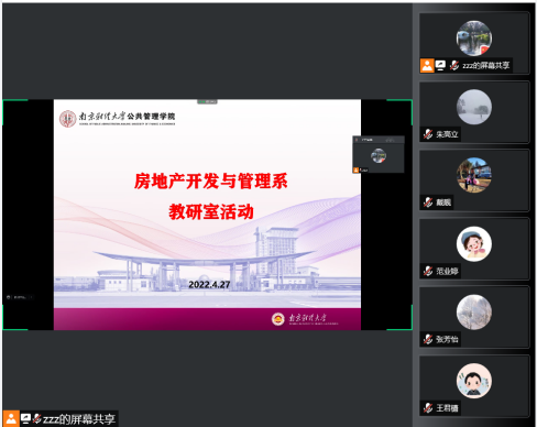 房地产开发与管理系围绕“专业评估及一流专业建设”两个议题开展了教研室活动,由系主任张丽芳副教授主持,活动以线上形式在腾讯会议举行,房地产系全体教师均在线参加。