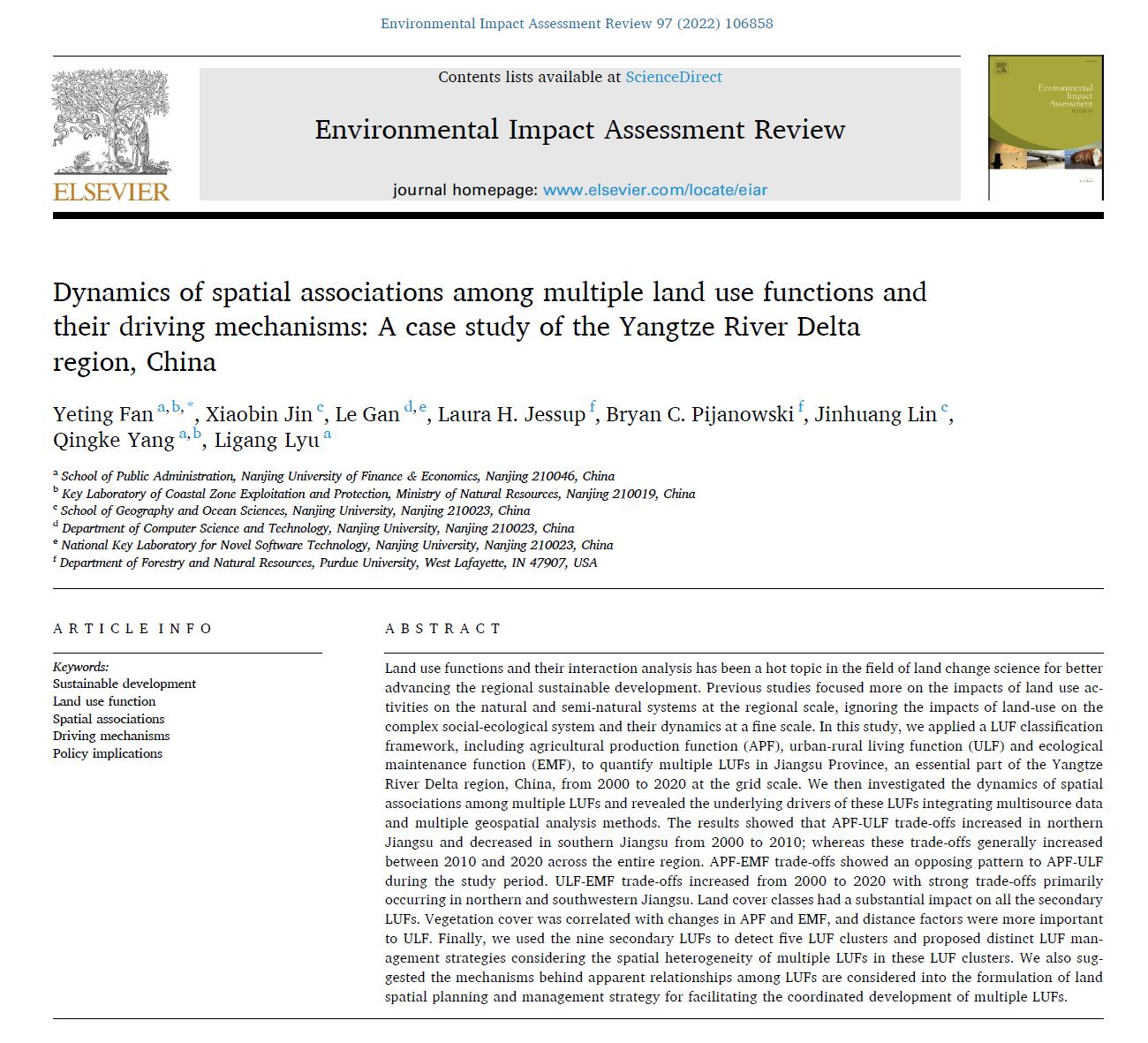 论文发表于国际权威期刊《EnvironmentalImpact Assessment Review》期刊,此刊为SSCI检索,中科院社会学一区期刊,最新影响因子为7.9。