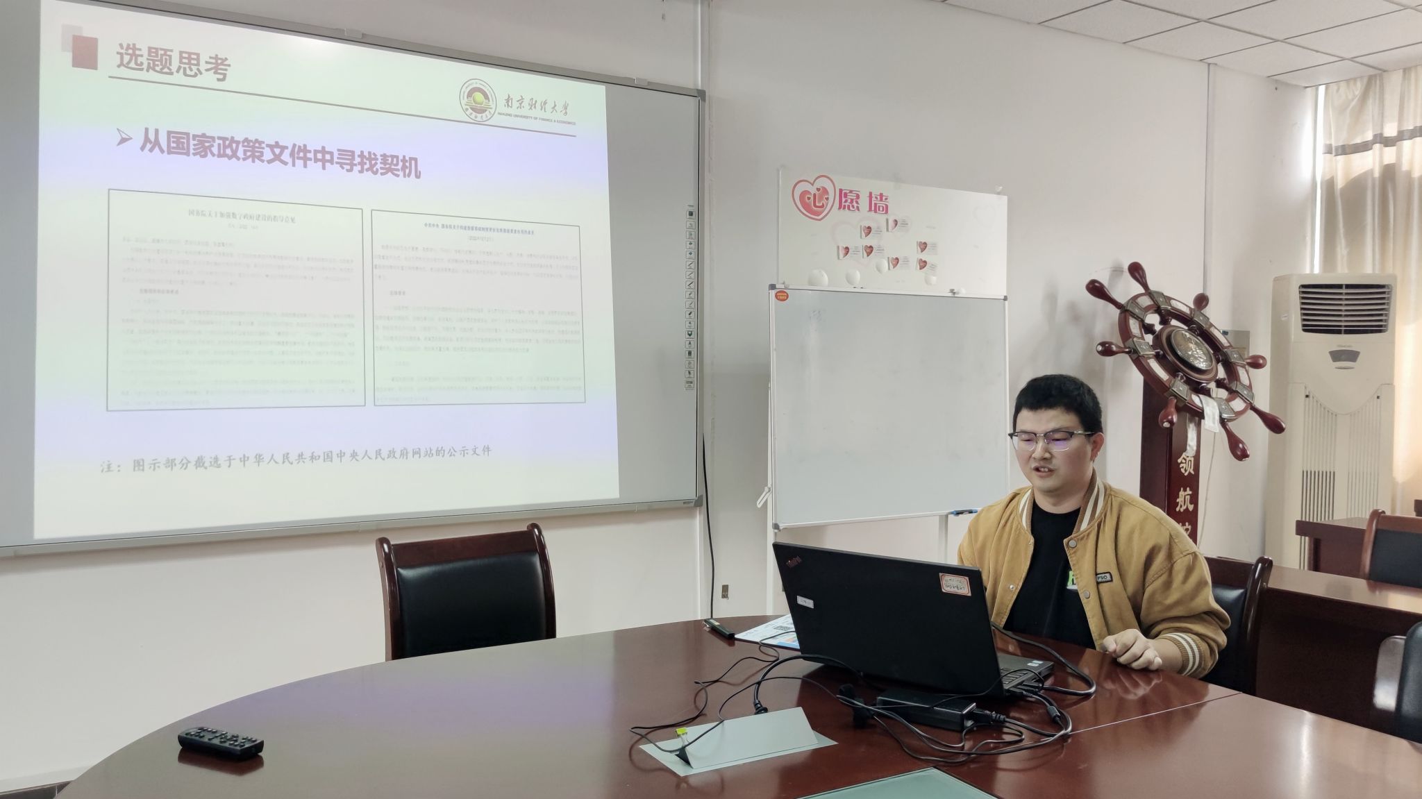 随后,郝志远老师谈了他在自科项目申报过程中的思考,主要包括选题和撰写两个方面。在选题方面,他主要提到要学会从学科主流期刊的选题指南、与研究主题相关近期刊出的文章标题、政策文件等多个角度综合考虑;在撰写方面,主要强调内容的逻辑性、要尽可能凝练归纳,形成对仗工整的标题,同时图表还要有设计感,尽可能多放图。