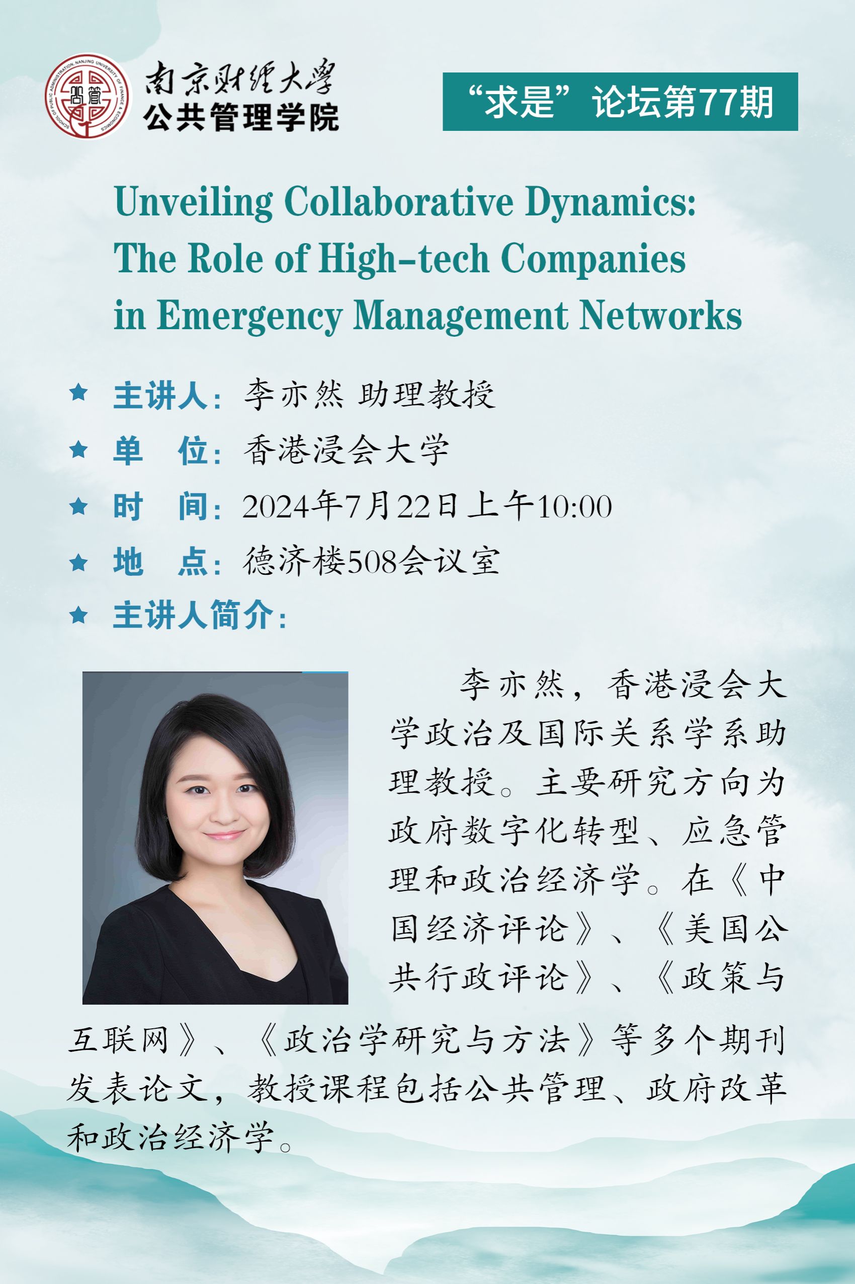 【讲座预告】“求是”论坛第77期