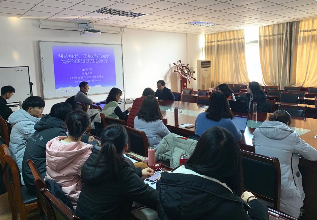 余文学教授在我校仙林校区德济楼508会议室作了题为“利益均衡:征地拆迁制度演变的逻辑及现实冲突”的讲座。黑丝