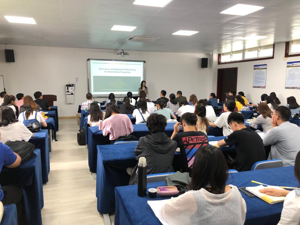 孙瑞副教授作了题为“Governance and Subnational Borrowing: An International Perspective ”的学术报告。她指出当前研究表明好的政府可以促进公平、参与度、透明度、效率、廉价和持久性。那么政府能力水平能否影响州政府和地方政府的信用评级?孙教授基于34个国家270个政府层级2005-2016年的数据1989个样本量对该问题进行国际视野的验证。其中52%的样本来自21个发达国家,48%的样本来自13个发展中国家,并且87%为联邦制国家,13%为集权制度国家。研究发现,政府的效率水平、人口规模显著正向影响地方政府信用评级、政治稳定性、债务率显著负向影响政府的信用评级。她的研究对我国地方政府发债和债务管理提供了国际视角,具有较高的学术价值和现实意义。