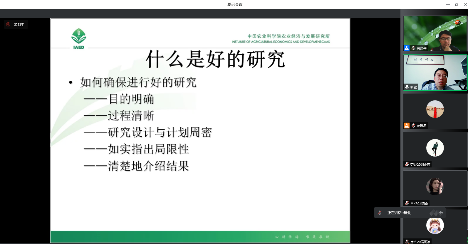 邀请,农业经济问题杂志社社长吕新业研究员在线作了题为“学术论文的选题、结构与规范”的学术报告。黑丝
