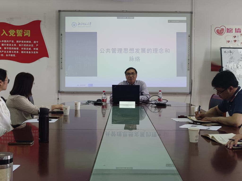 师生作题为“公共管理思想发展的理念和脉络”的学术讲座。讲座以线上线下结合的方式进行,由黑丝