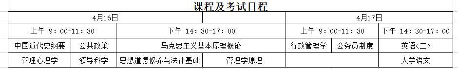 需要报名补考的同学可以自行登录江苏省教育考试网www.jseea.cn根据提示进行报名,也可以联系所在学院自考老师(联系电话:83495972)报名,或者加入公管学院补考群(QQ群号:700985844)由学院报名(报名截止时间3月2日),每名考生每半天只能报考一门课程,考生可根据自身情况合理报考。具体考试日程详见下表