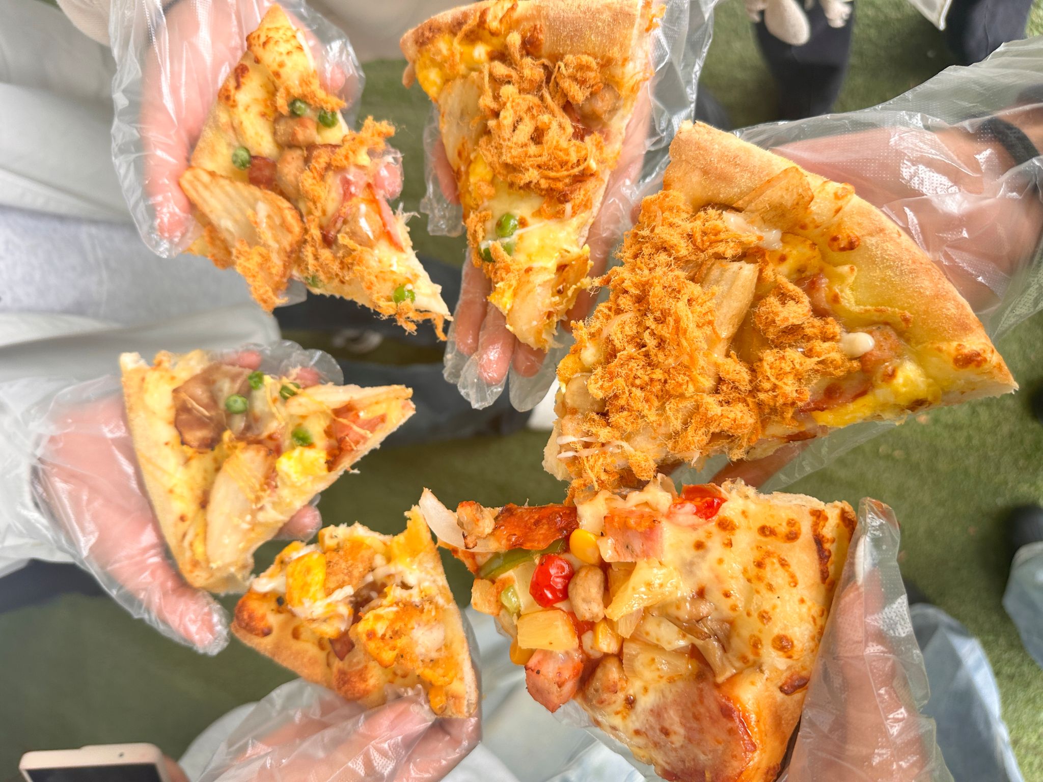 活动开始前,一杯杯奶茶、美味的披萨和零食映入眼帘,这是学生会为每一位成员准备的美食。大家依次领取了奶茶并且一起共享了美味的披萨,从大家在共享美食的笑容中可以看出大家对这次“破冰”活动的期待与兴奋。