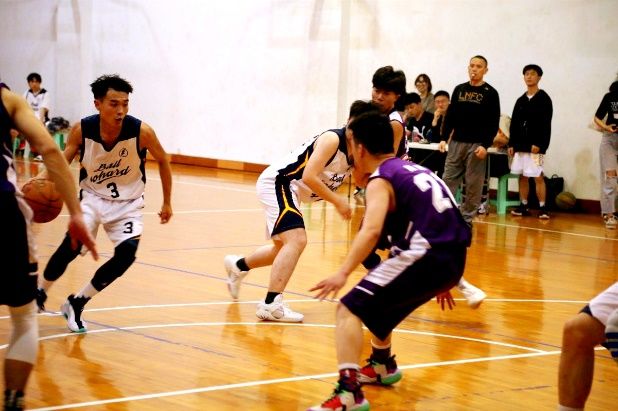 4月29日晚,篮球北馆,第三场小组赛,我们面对有着强大内线坐镇的法学队。大家都摩拳擦掌,期待着在这场比赛中大放异彩,拿下胜利。我们吸取了上一场比赛落败的经验,保护篮板,限制对方内线核心,借此我们开场便打出了一波5-0的小高潮。之后的战况尤为激烈,双方紧咬比分,极限防守。比赛进入白热化,随着队长梅大伟的一记惊天三分,全场沸腾,我方球员的激情彻底释放。比赛进入了加时,加时赛的比拼更为激烈。临近终场,凭借6号陆骁队员的爆发,比赛的胜利果实被黑丝