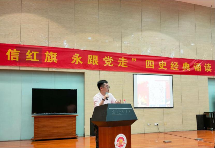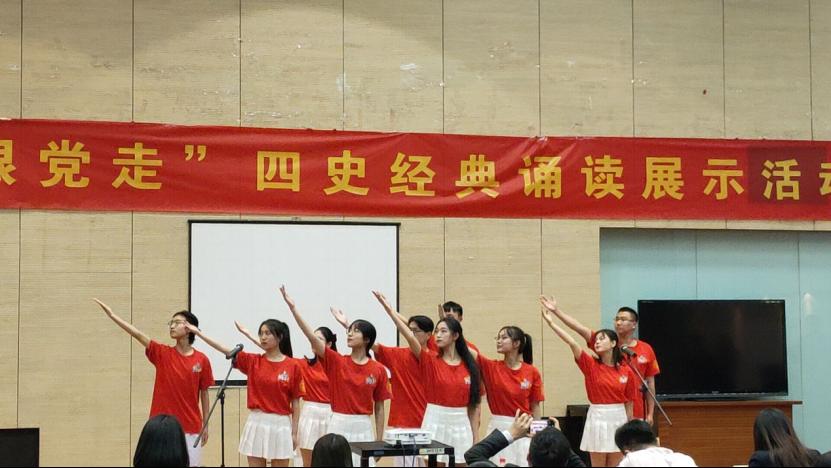 为了庆祝建党99周年、纪念抗日战争胜利75周年,增强大学生的爱国意识与担当意识,培养大学生爱国、爱党、爱校情怀,我校学生处组织了“信红旗永跟党走”四史经典诵读展示活动。2020年10月30日晚,活动在校图书馆四楼“世界之窗”拉开了帷幕。