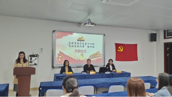 在德济楼502举行了第十四期“党的发展对象”培训班开班仪式。学院党委书记胡永远老师、党委副书记张荣霞老师、本科生党支部书记冯颖老师及培训学员参加了此次仪式。