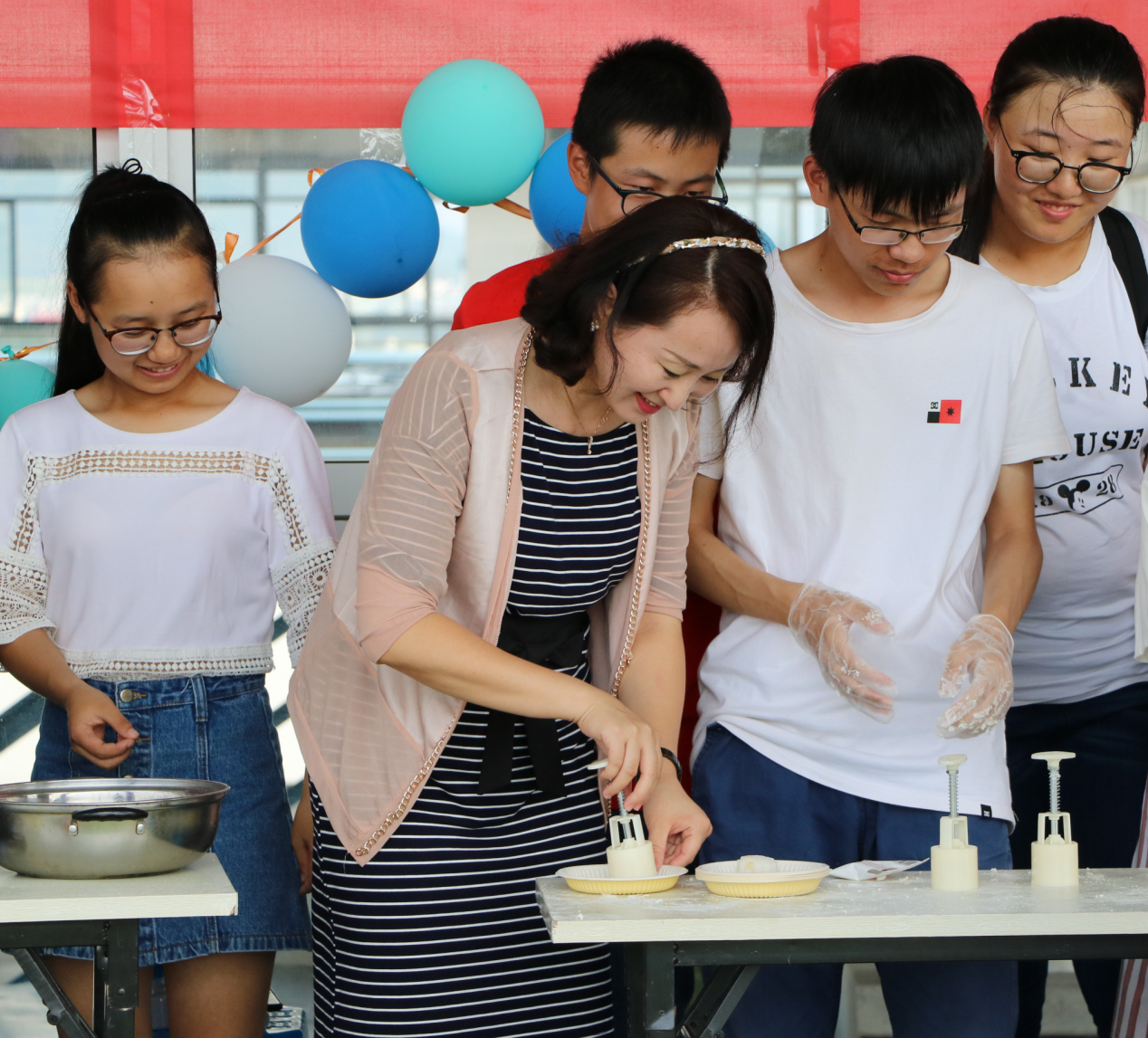 活动过程中,吴文俊教授品尝了学生制作的“校训月饼”系列之“务实”月饼。吴教授一直以来都以“务实”的态度传播知识,“超越”的教学方式打开学生的视野,鼓励学生遵循逻辑,敢说敢创新。