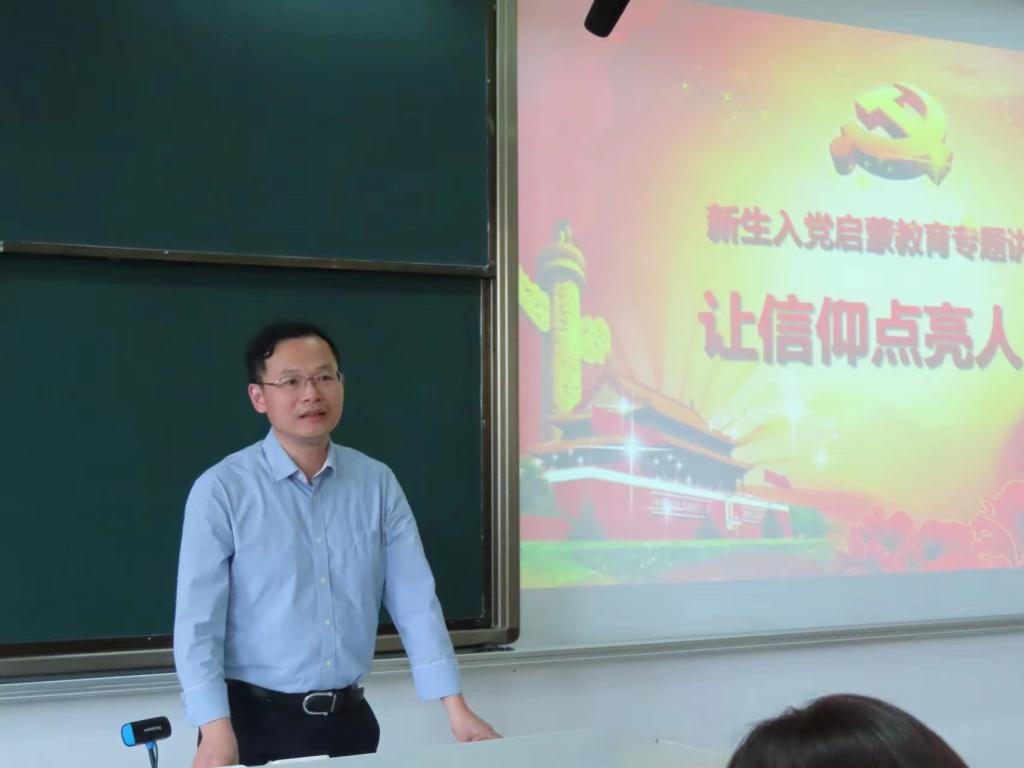 首先,高晓东书记发表讲话。高书记围绕“如何认识中国共产党”的问题,向我们讲述了中国共产党的发展历史、现状以及在发展过程中取得的一系列成绩和宝贵经验,重点阐述了中国共产党的三个特质。第一,中国共产党历经艰难困苦,是一个从艰苦斗争中成长起来的党,斗争经验丰富;第二,中国共产党善于针对当时所处的实际环境进行理论创新,不断开创新局面;第三,中国共产党勇于自我革命,具有自我净化、自我完善、自我革新、自我提高的能力。最后,高书记鼓励大家积极向党组织靠拢,树立崇高的理想信念,为党注入新鲜血液。