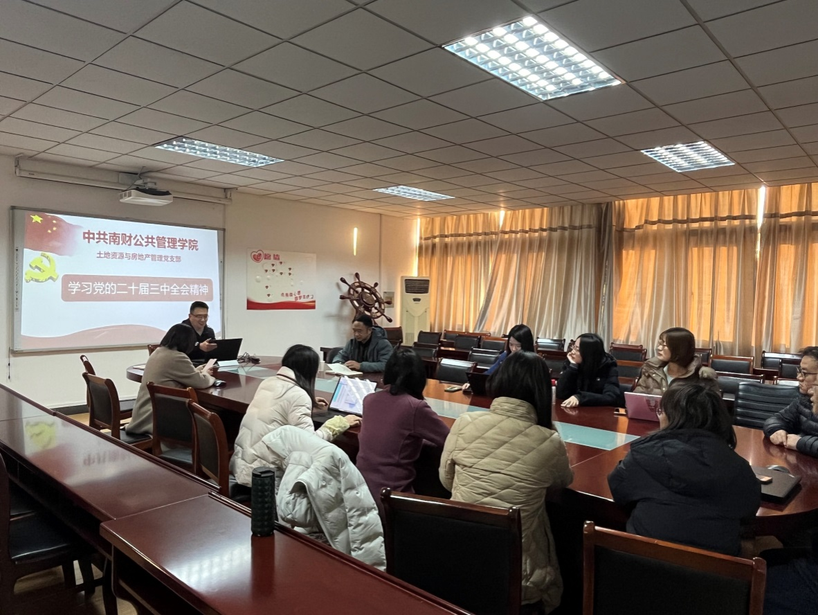 土地资源与房地产管理系教工党支部召开全体党员大会,学习党的二十届三中全会精神,并结合自己的专业和所授课程,融会贯通,走进课堂。全体教工党员参加了此次会议。