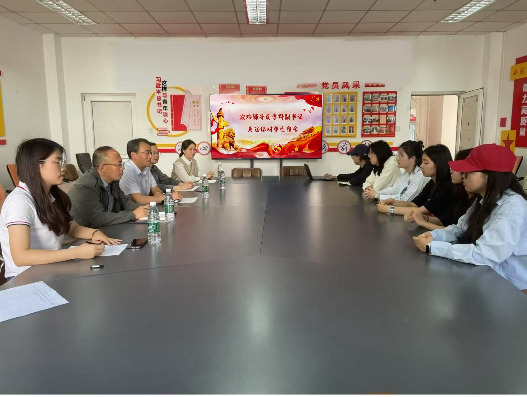 本科生党支部政治辅导员李群深入仙林校区10号宿管站,与结对宿舍学生座谈交流,并参加本科生党支部活动。黑丝